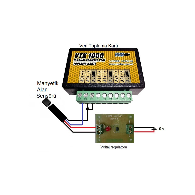 LUDRE VTK 1050 USB 3 CH 16 BİT 1050 ÖRNEK/S VERİ TOPLAMA KARTI